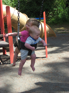I put Eli on a tricycle and pushed him around the yard, Ruby and I played golf, Eli ate dirt, Gypsy tried to eat the golf ball, we all sat on the big swing and accidentally bashed Gypsy in the head, Eli fell off the slide, Ruby 'walked the plank' on her balance beam.... the birds chirped and the sun shone! It was glorious!