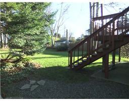 View from the north east corner looking south east, raspberry and rhubarb bed on the left! Stumps will be grinded out at some point this summer!